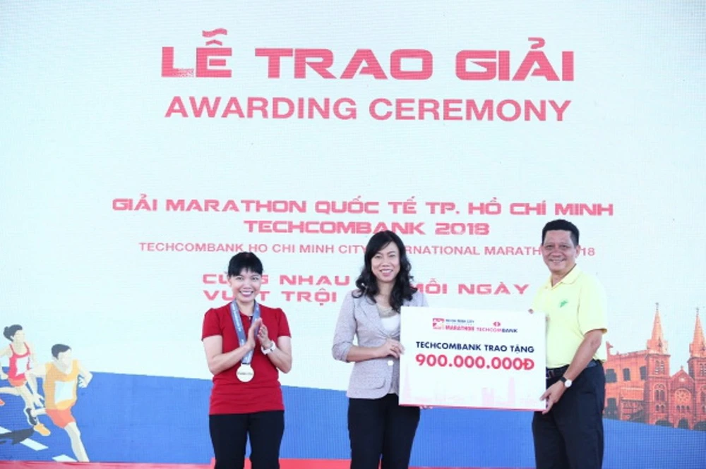 Tổng kết giải chạy, bà Nguyễn Thị Vân Anh, Giám đốc khối Tiếp thị, đại diện Techcombank, đã trao tặng số tiền tính tại thời điểm bế mạc giải cho Quỹ vì người nghèo và tài năng TP.HCM.
