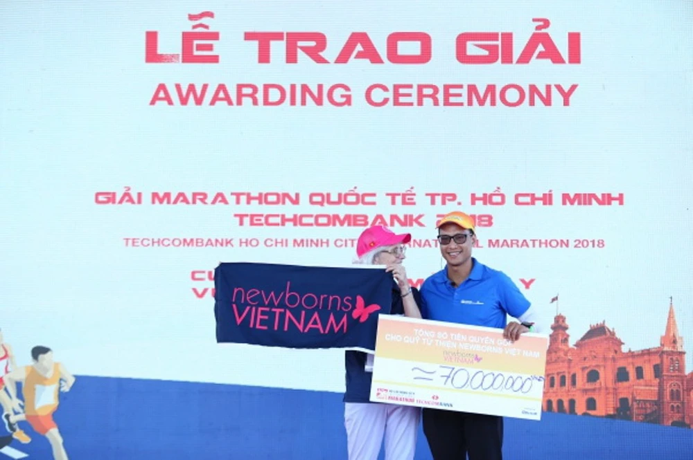 Ban tổ chức giải marathon Quốc tế TP.HCM Techcombank 2018 trao tặng quỹ Newborns Việt Nam 70 triệu đồng.