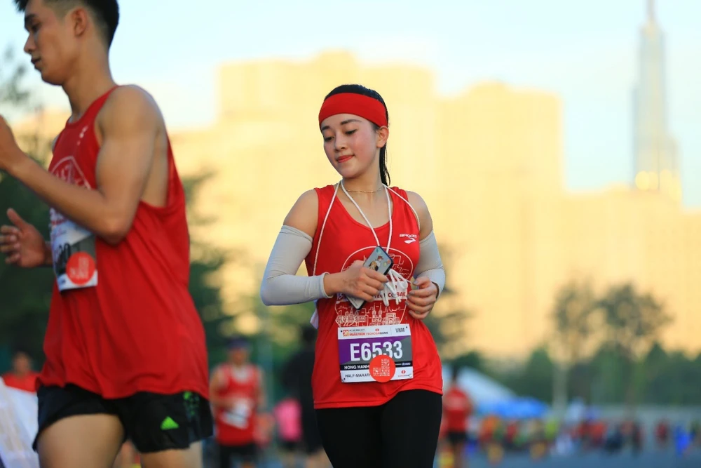 Hàng nghìn người trên cung đường chạy cùng truyền tải thông điệp “Cùng nhau vượt trội hơn mỗi ngày”. Không ít người kiệt sức trước khi cán đích nhưng nhanh chóng được các đồng đội chưa từng quen mặt đến vực dậy, cùng chinh phục mục tiêu chung. Dù người nhễ nhại mồ hôi nhưng tất cả vẫn nở nụ cười rất tươi.