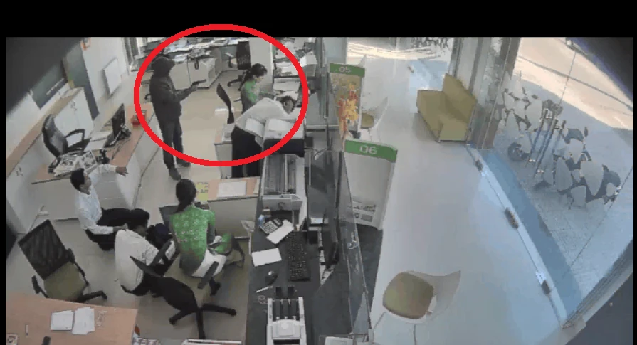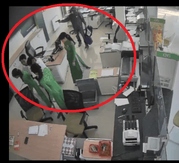 Như Pháp Luật TP.HCM đưa tin, cuối giờ chiều 26-4, tên cướp xông vào trụ sở, chĩa súng khống chế sáu nhân viên ngân hàng (ba nữ, ba nam), yêu cầu đưa tiền rồi tẩu thoát. Camera an ninh tại ngân hàng ghi lại hình ảnh vụ cướp này...