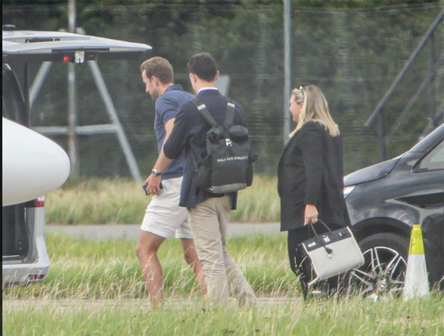 Harry Kane đã đến Đức cùng vợ để kiểm tra y tế. ẢNH: SUN SPORTS |