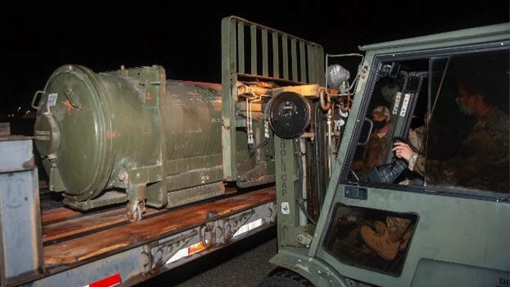 Tên lửa được di chuyển khỏi sân bay. Ảnh: căn cứ không quân MacDill