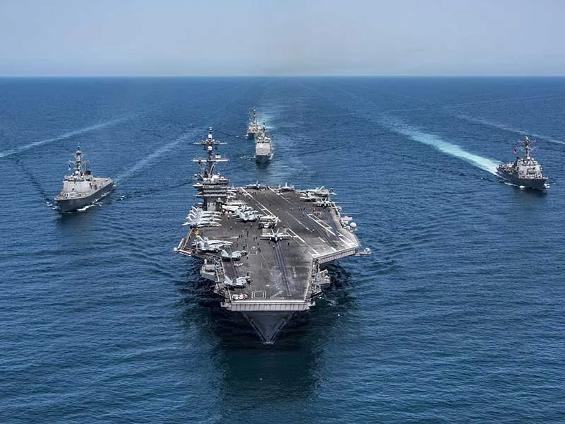 Tàu sân bay USS Carl Vinson cùng các tàu khu trục Mỹ, Hàn Quốc trong một cuộc tập trận ở Tây Thái Bình Dương hồi đầu tháng 5-2017. Ảnh: REUTERS