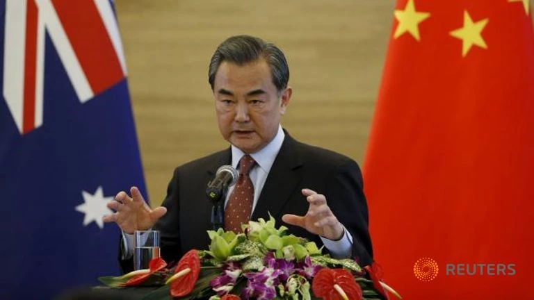 Bộ trưởng Ngoại giao Trung Quốc Vương Nghị trong cuộc họp báo với người đồng cấp Úc Julie Bishop ở Bắc Kinh mới đây. (Ảnh: Reuters)