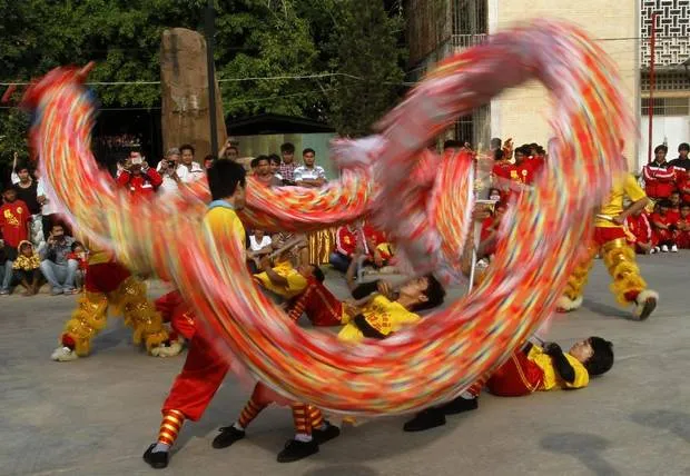 Người Campuchia gốc Hoa đang múa rồng để chào mừng Tết Nguyên đán sắp tới tại Đại sứ quán Trung Quốc ở Phnom Penh ngày 30 tháng 1 năm 2014. ( SAMRANG Pring / Reuters)