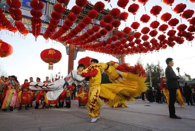 Các vũ công truyền thống biểu diễn trong lễ khai mạc hội chợ kỷ niệm năm mới tại đền thờ Trái đất, Công viên Ditan, Bắc Kinh. Ảnh chụp ngày 30 tháng một năm 2014. ( KIM KYUNG-HOON/REUTERS )