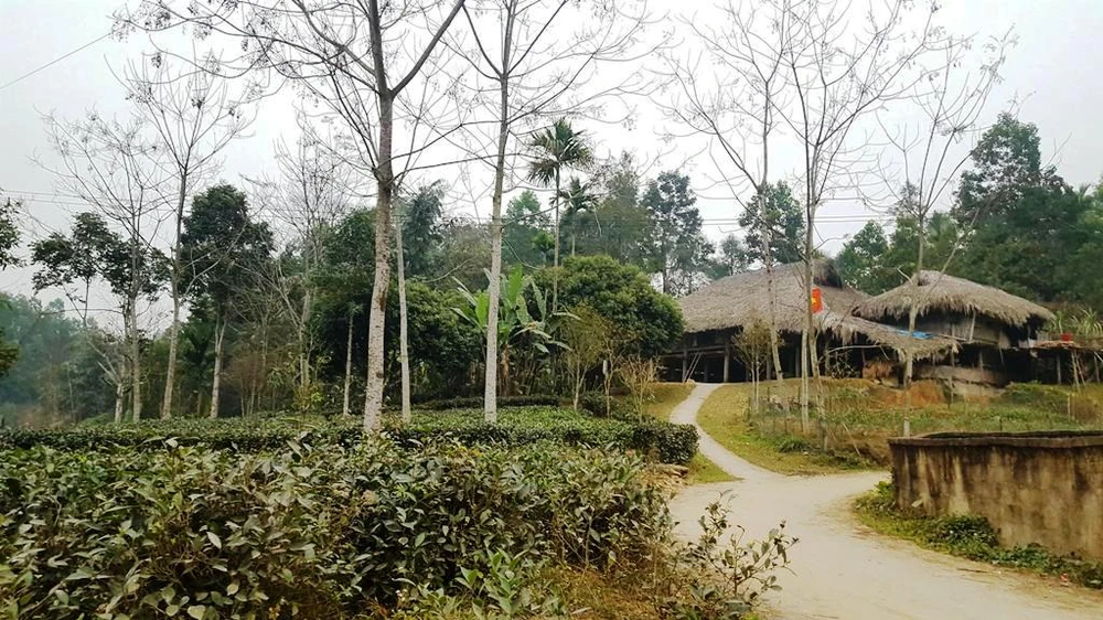Ở mỗi ngôi nhà sàn, bà con đều treo lên một lá cờ đỏ sao vàng, nhìn từ xa trông ấp áp sắc xuân.