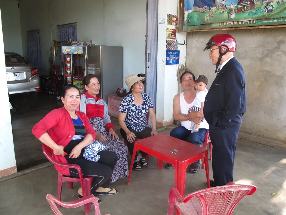Bà con lối xóm đến nhà chia vui cùng ông Sáu