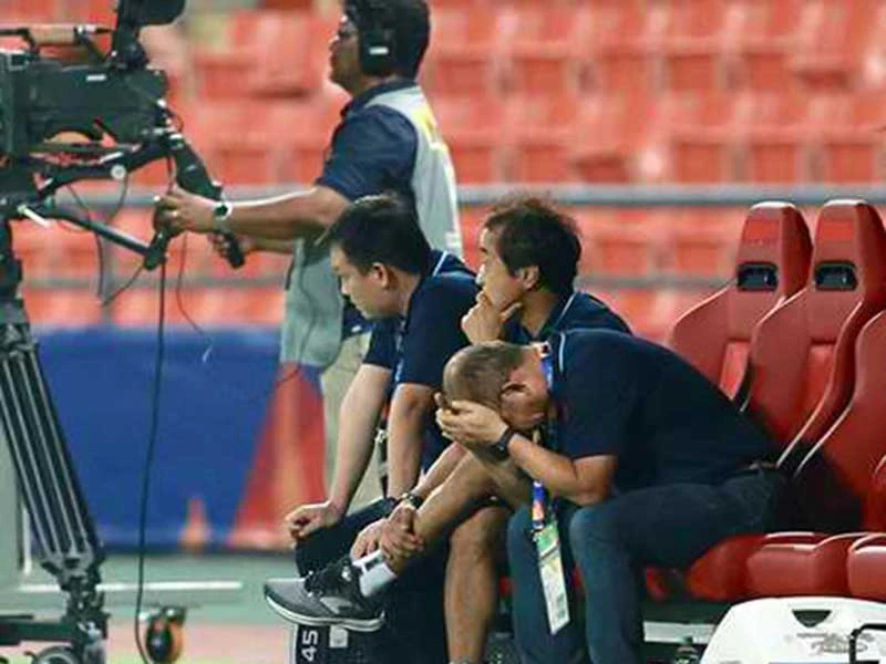 HLV Park Hang-seo gục đầu thất vọng và vẫn nhận hết lỗi về mình. Ảnh: CTV