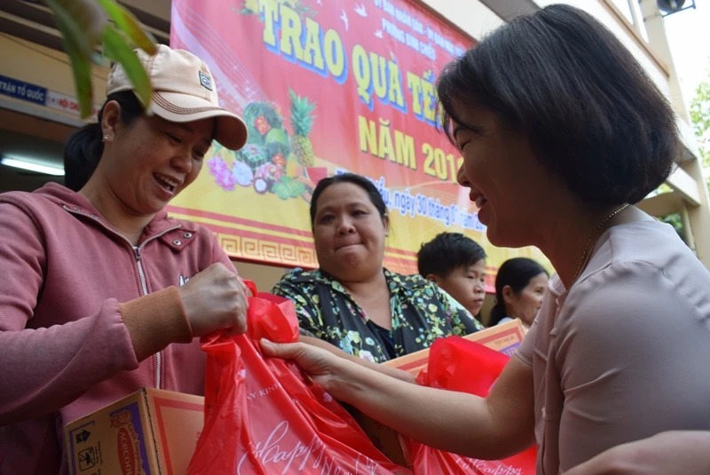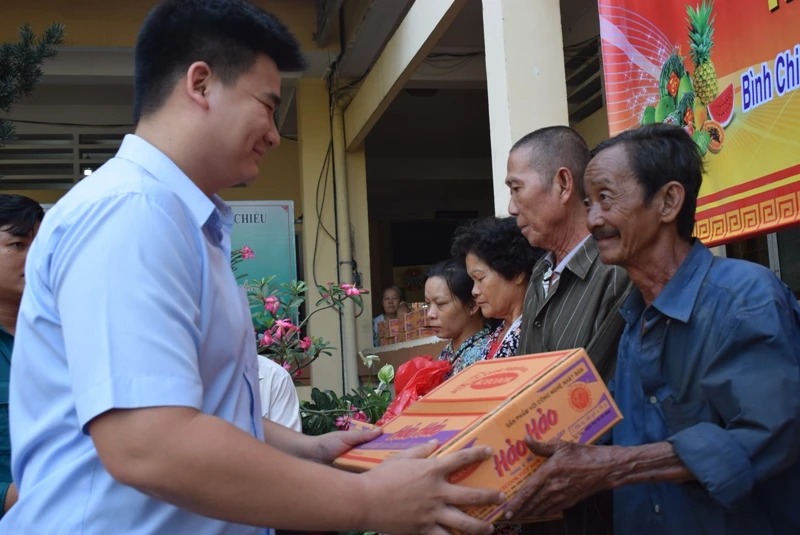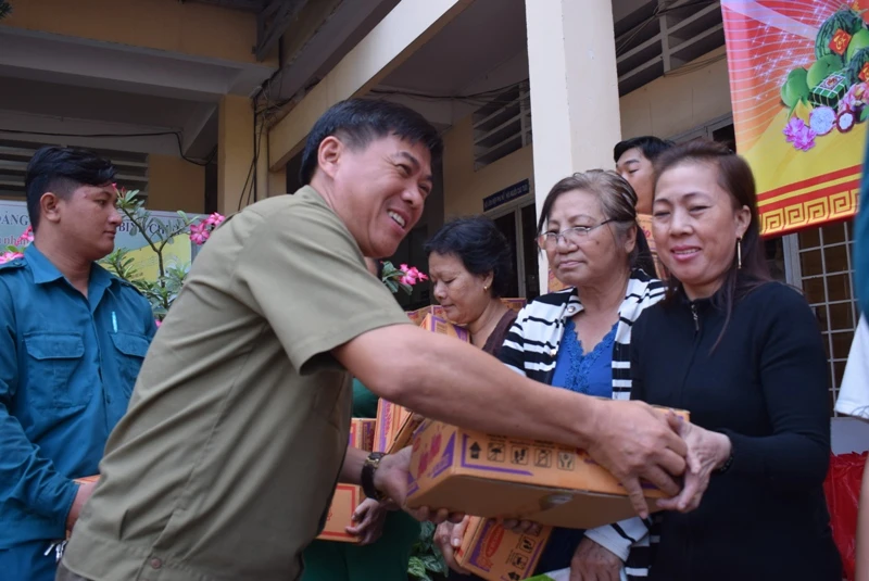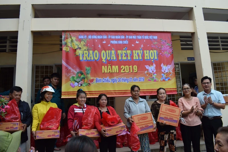 | Sáng 30-1 (25 Tết), ông Nguyễn Văn Chương, Phó Tổng biên tập báo Pháp Luật TP.HCM, Phó Chủ tịch Hội Cựu chiến binh Sở Tư pháp TP.HCM cùng lãnh đạo UBND phường Bình Chiểu, đại diện các mạnh thường quân đã trao tận tay những món quà cho các hộ gia đình.
