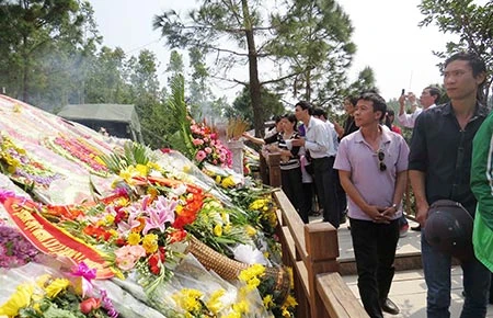 Từng bước chân người ở khắp nơi trong nước nối nhau về Vũng Chùa. Hoa tươi phủ khắp lối mộ. Khói hương nghi ngút lòng thành…