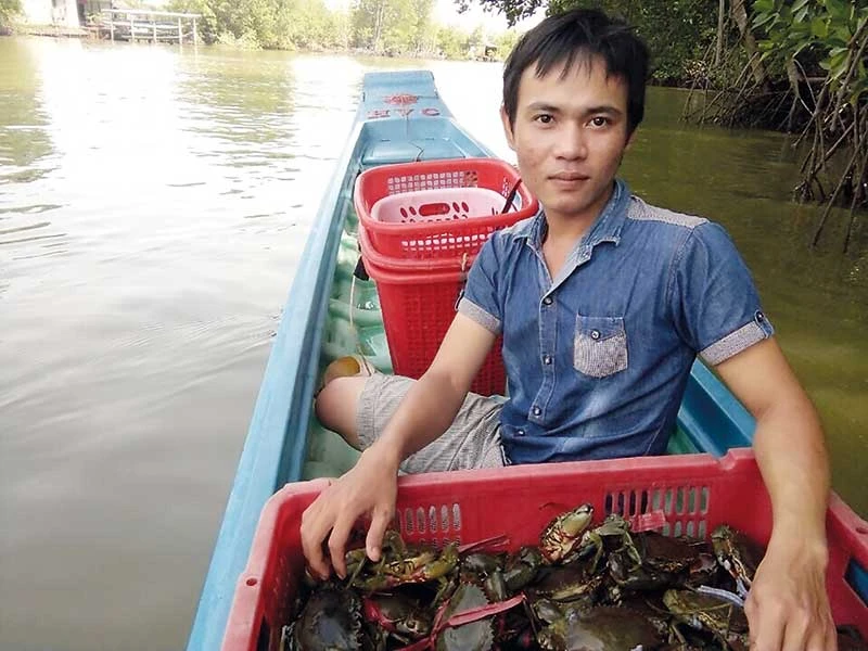 Nguyễn Hoàng Khang trông đầm tôm cho cậu.