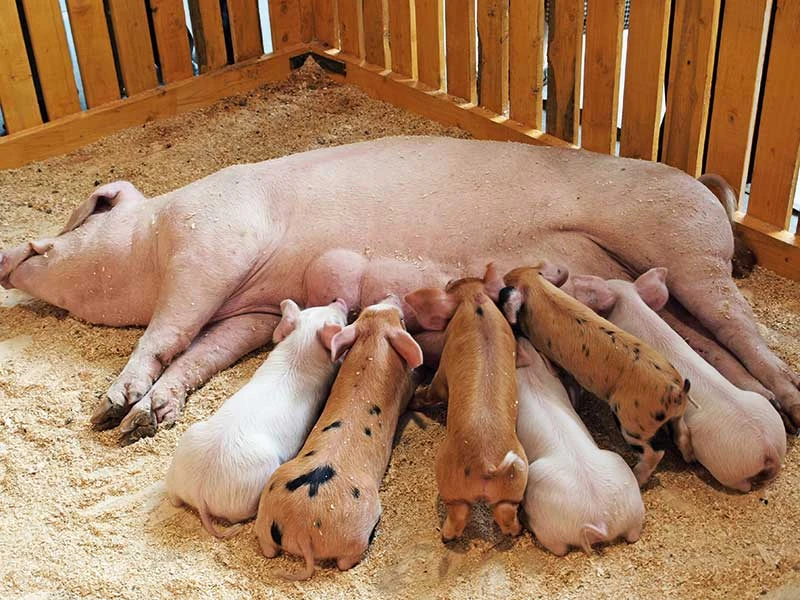 Con Nái đẻ được 14 con, gồm sáu con màu trắng, tám con lông vàng nâu có những đốm đen. Cho 14 con bú cùng lúc thì khó nên bố tôi chia ra cho bú làm hai đợt. Khi cho heo trắng vô chuồng bú mẹ thì heo đốm ở ngoài chuồng được mẹ tôi pha sữa bình cho bú và lát sau thì làm ngược lại.