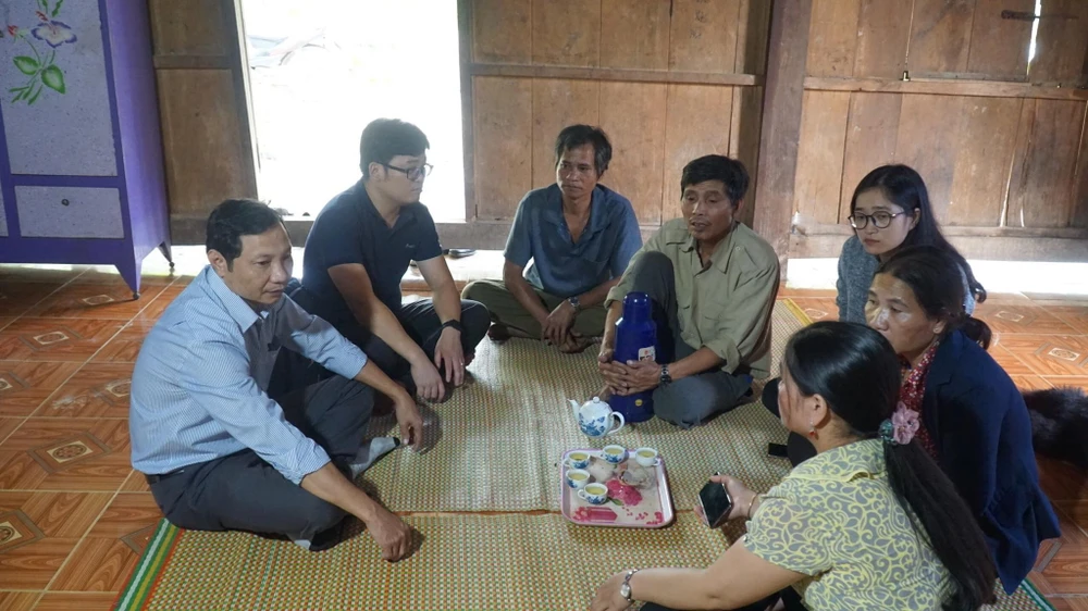Đại diện lãnh đạo Phòng Tư pháp huyện Tây Giang, UBND xã Lăng và Báo Pháp Luật TP.HCM trao đổi về kế hoạch làm nhà với gia đình ông A Lăng Crơ
