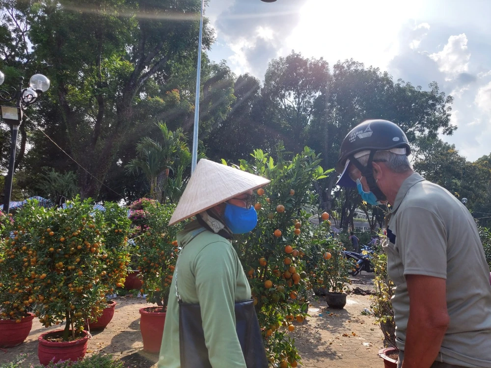 Người ta đâu có hét giá đâu mà phải trả. Nhà tui ngày Tết phải có hoa tươi chưng Tết mới là Tết. Dịch bệnh thì ra đường mình bịt kín mít vầy là được nè. Nay tui mua trễ nè, chớ muốn mua sớm, có hoa đẹp chưng sớm, người ta cũng bán được lẹ còn về quê ăn Tết. Dịch bệnh vậy, chắc tui không dám đến nơi đông người, ở nhà để phòng dịch thôi. Mua hoa về ngồi ở nhà ngắm hoa cũng vui”, chị Ba nói, rồi phóng con Cub lùn chạy èn èn về nhà, phía sau hai chậu cây nhỏ rung rinh.