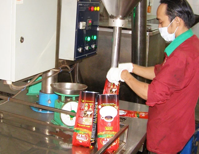 Khâu đóng gói cà phê của Công ty Hải Hưng Thịnh đảm bảo ATVSTP. Ảnh: VÕ LÂM
