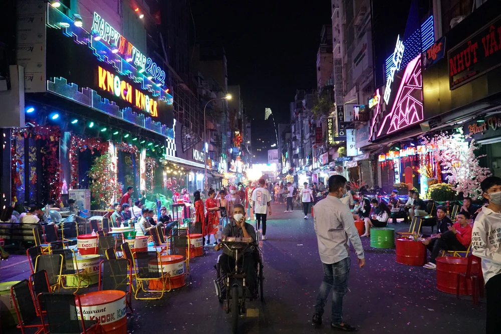 Phố đi bộ Bùi Viện cũng rộn ràng sau nhiều tháng ngày đóng cửa vì dịch COVID. Ảnh: BẢO PHƯƠNG