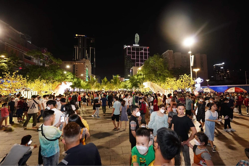Anh Nguyễn Văn Bon, ngụ TP Thủ Đức, TP.HCM chia sẻ: “Thường Tết năm nào tụi anh cũng đi phố đi bộ, không bắn pháo hoa nhưng anh vẫn đi, hầu như năm nào ở Sài Gòn anh đều đi. Năm nay do dịch nên anh thấy tổ chức ít hơn, mọi năm người dân cũng đông nhưng năm nay còn hạn chế, anh cảm thấy rất vui khi tham gia những hoạt động như vậy, anh muốn lúc nào Sài Gòn cũng vui nhộn như vậy”. Ảnh: BẢO PHƯƠNG
