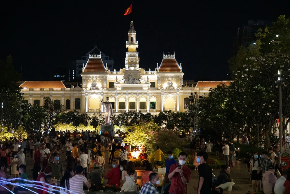 Đêm Giao thừa người, dù TP.HCM không tổ chức bắn pháo hoa, song nhiều người dân vẫn xuống phố, đi lễ chùa đón mừng năm mới.