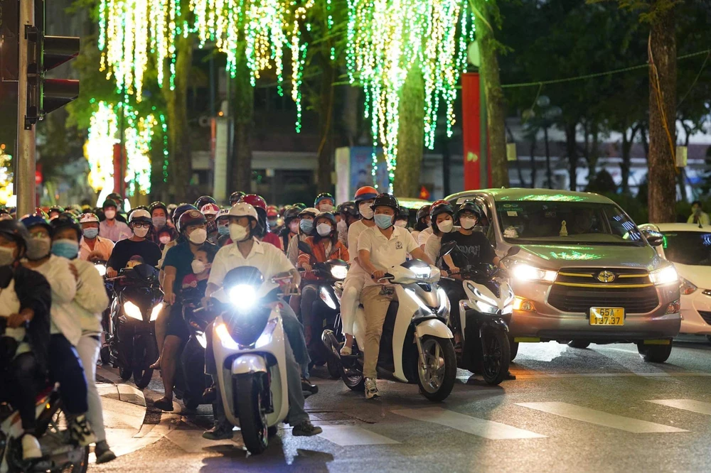 Rất đông người dân về trung tâm TP vui xuân trong đêm giao thừa. Ảnh: BẢO PHƯƠNG