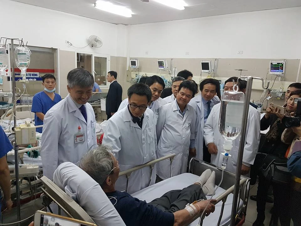 Phó Thủ tướng Vũ Đức Đam vào thăm hỏi, động viên các bệnh nhân Khoa cấp cứu A9, BV Bạch Mai tối 30 Tết Đinh Dậu.