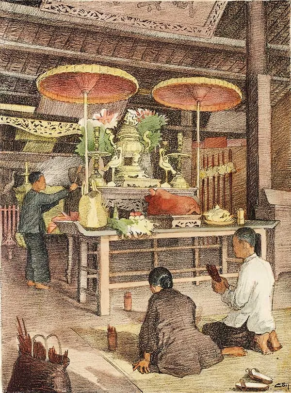 Tranh trích trong bộ tranh Monographie dessinée de l’Indochine (Chuyên khảo có minh họa về Đông Dương) xuất bản năm 1935 do học sinh trường Vẽ Gia Định thực hiện.