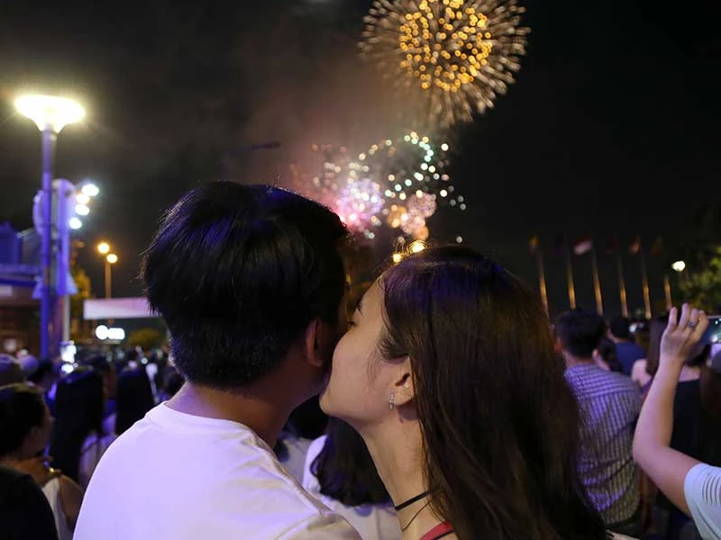 Hai bạn trẻ trao nhau nụ hôn trong thời khắc giao thừa. Ảnh: HOÀNG GIANG