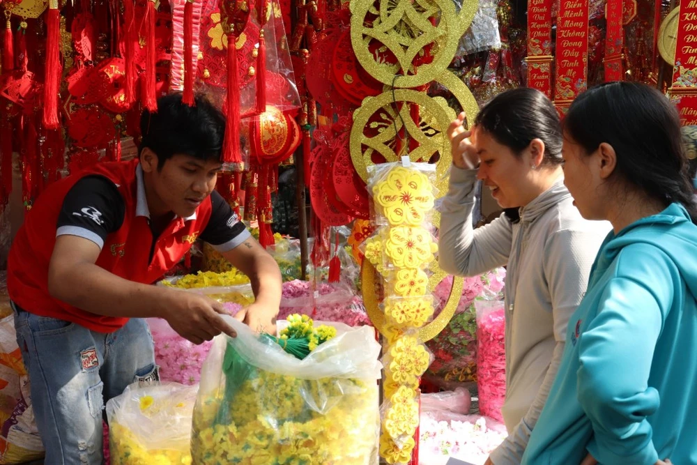 Nằm dọc hai bên tuyến đường Hải Thượng Lãn Ông ở quận 5 là hàng loạt cửa hàng bày bán đồ trang trí tết với đa dạng mẫu mã, chủng loại, màu sắc phục vụ nhu cầu người tiêu dùng.