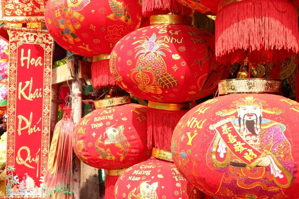 Lồng đèn là vật trang trí ưa thích trong ngày tết cổ truyền của người Hoa. Vì thế lồng đèn là món đồ có vô số mẫu mã đa dạng được trưng bày khắp các gian hàng trên đường Hải Thượng Lãn Ông.