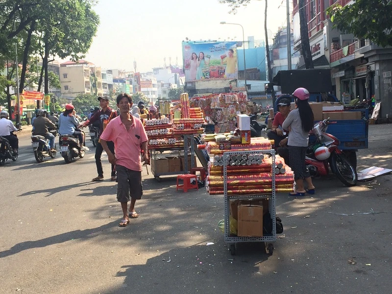 Chưa đến Tết thì còn đỡ, mấy ngày giáp Tết tuyến đường này tha hồ chiếm dụng. Tôi ngày nào cũng qua đây, khu vực này nhộn nhịp lắm, đường đã nhỏ lại còn chiếm hết. Nhiều người buôn bán phía sau thấy những hộ phía trước bày bán hàng hàng hóa chiếm hết tầm nhìn, nên nhiều người tìm cách để hàng hàng hoa của mình ra giữa đường để nhiều người đi qua có thể thấy khiến con đường ngày càng bị thu hẹp” - chị Nguyễn Thu Hằng bức xúc.
