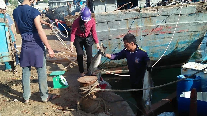 Người dân Lý Sơn thu hoạch cá bớp vụ cuối năm- Ảnh: Phạm Mịnh