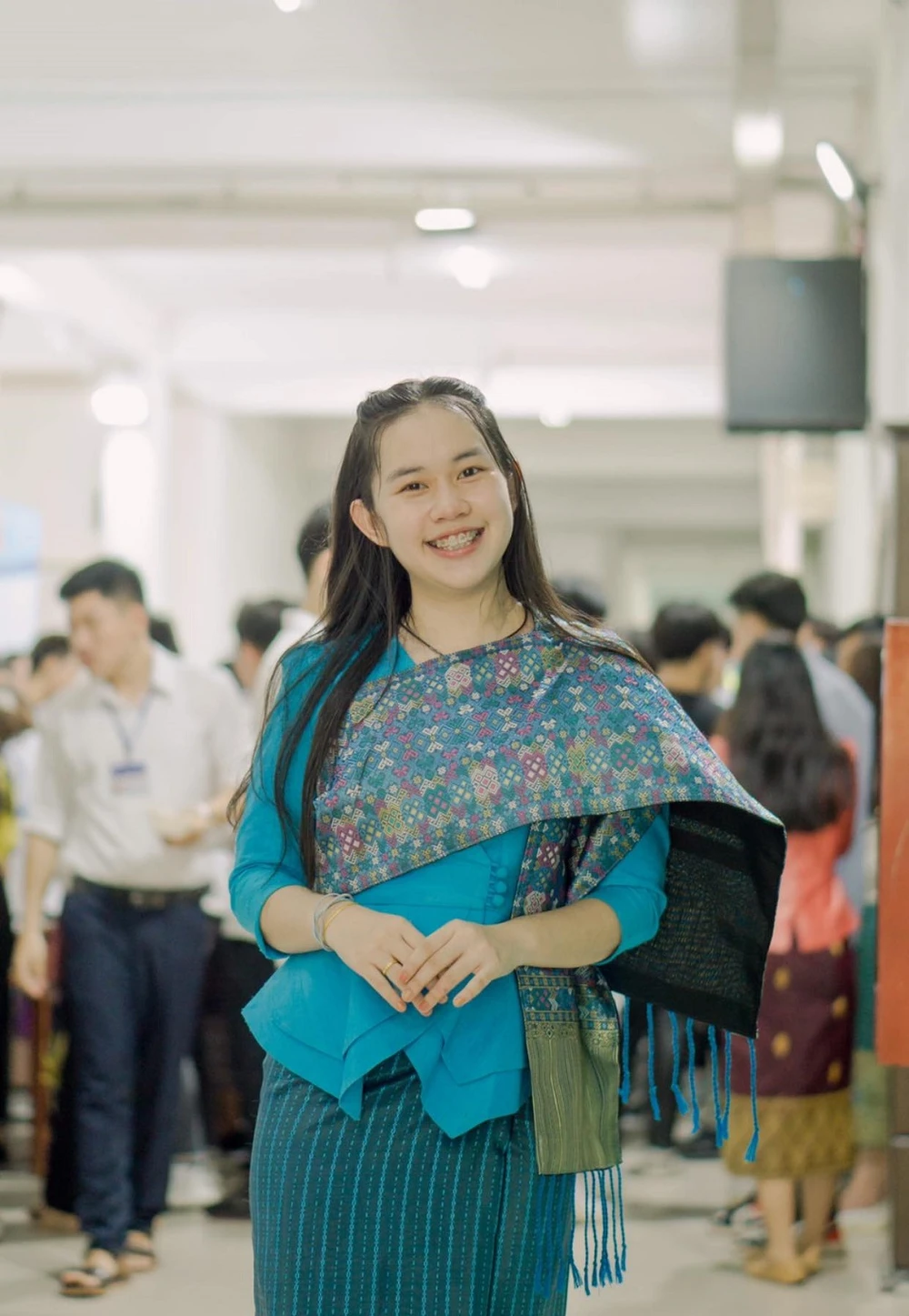 Bạn Sivolavong Phathalinh rạng rỡ trong trang phục truyền thống. Ảnh: TÚ NGÂN.