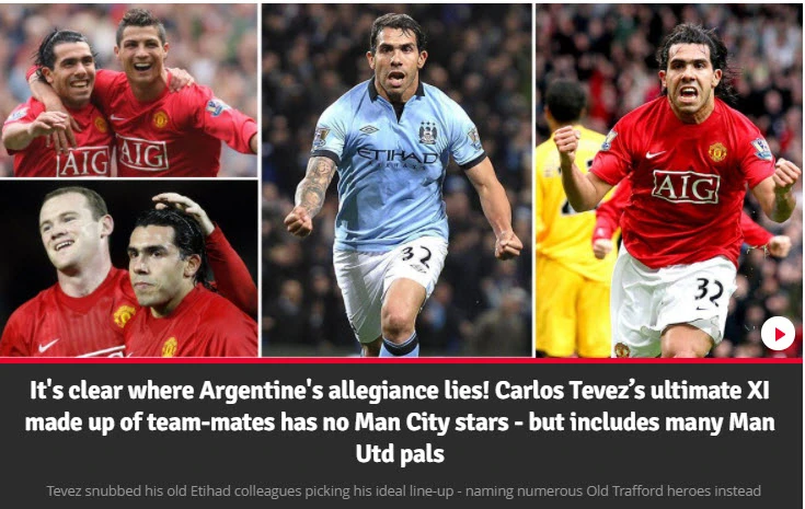 Đáng ngạc nhiên là không có bất cứ cầu thủ Man City nào trong đội hình của Tevez. Tevez chọn 6 cầu thủ MU gồm Rio Ferdinand, Gabriel Heinze, Patrice Evra, Paul Scholes, Cristiano Ronaldo và Wayne Rooney.