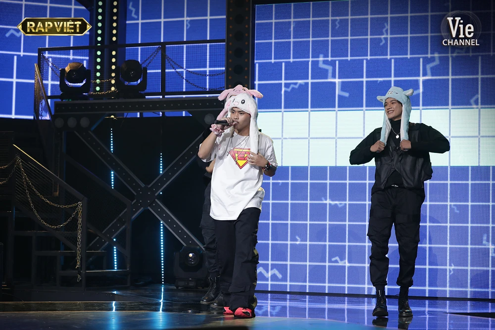 Xuất hiện trên sân khấu với tạo hình cực đáng yêu khác xa với hình ảnh gai góc, hầm hố mà Tez đã thể hiện ở hai vòng trước khiến Karik và khán giả phải há hốc.