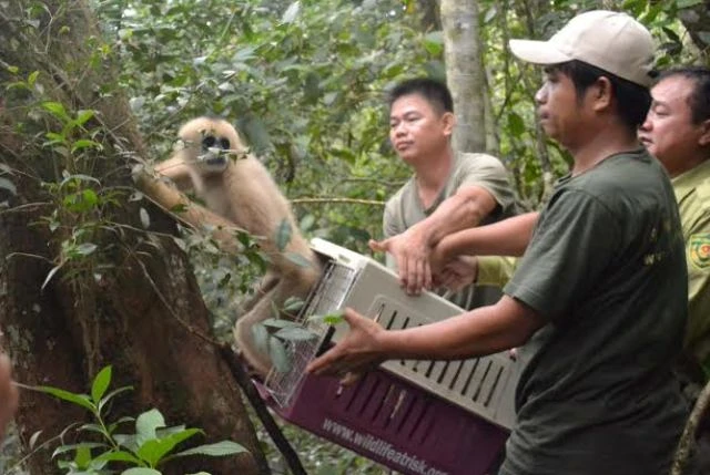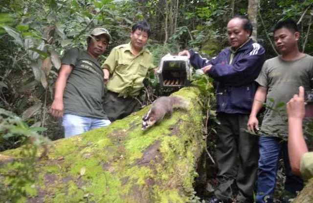 Chồn bạc má và vượn má vàng được nhân viên cứu hộ thả về tự nhiên. Ảnh: Xuân Lâm