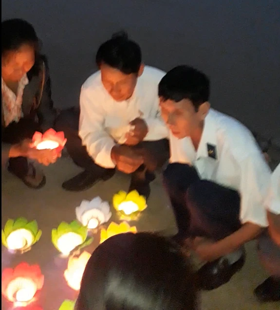 Công tác chuẩn bị thả hoa đăng.