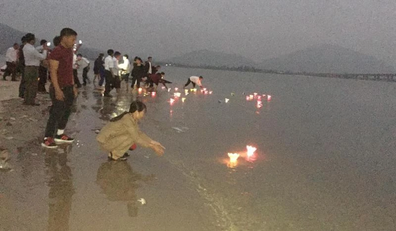 Thả hoa đăng xuống biển. Ảnh Đắc Lam