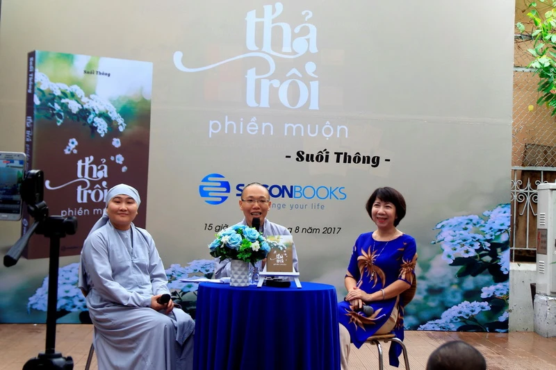 | Được biết, toàn bộ nhuận bút từ cuốn sách Thả trôi phiền muộn sẽ được sư cô Suối Thông sử dụng vào mục đích thiện nguyện. Vào ngày 28-8 sư cô sẽ cùng các mạnh thường quân trao tặng 50 suất học bổng, mỗi suất gồm: 1 triệu đồng, 10 cuốn tập và viết cho 50 em học sinh nghèo Trường PTTH Nguyễn Đình Chiểu huyện Phong Điền, tỉnh Thừa Thiên - Huế; và trao tặng 100 phần quà gồm sữa, bánh và lồng đèn cho 100 cháu bé tại Trường mầm non Phong Hiền II (huyện Phong Điền, tỉnh Thừa Thiên - Huế). Mặc dù đến ngày 28-8 sách mới chính thức phát hành, song hiện tại đã có 5.000 cuốn sách Thả trôi phiền muộn được bạn đọc đặt trước. |