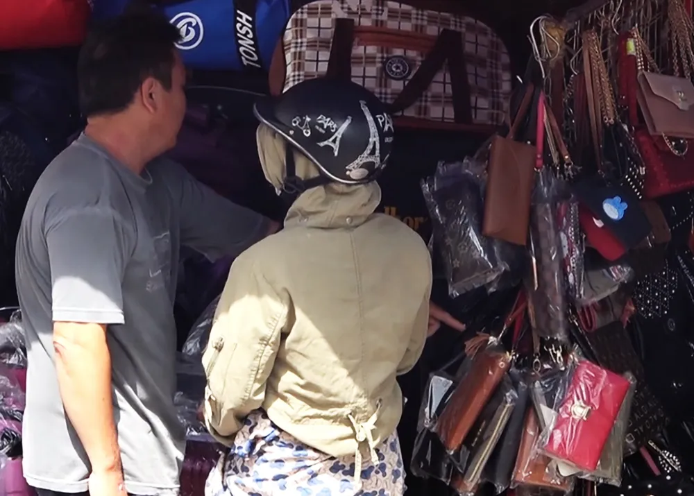 Cô gái này nhét tiền theo hướng chỉ tay của chủ sạp