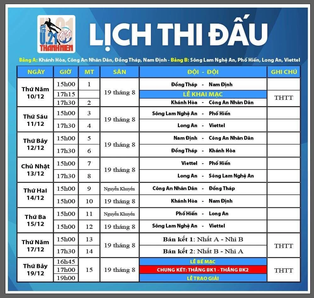 Lịch thi đấu vòng chung kết giải U-21 quốc gia.