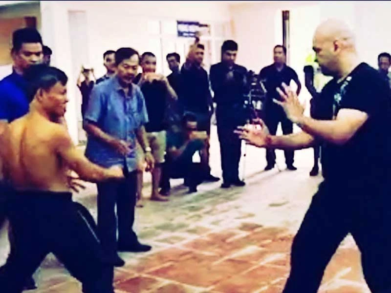 Ông Tây Flores thách đấu với các võ sĩ Việt Nam nhỏ con hơn rất nhiều và tung những đòn rất nặng ở sàn đấu không chính thức.