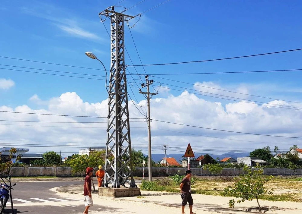 Trụ điện bị phóng điện sau khi các nam sinh thách nhau leo lên để thể hiện bản lĩnh. Ảnh: NX