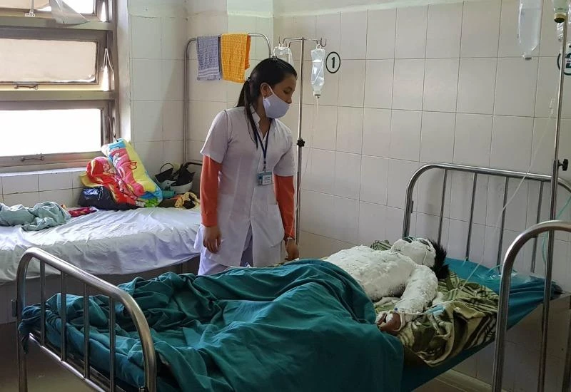 Nam sinh bị bỏng 42% do bị phóng điện. Ảnh: NX
