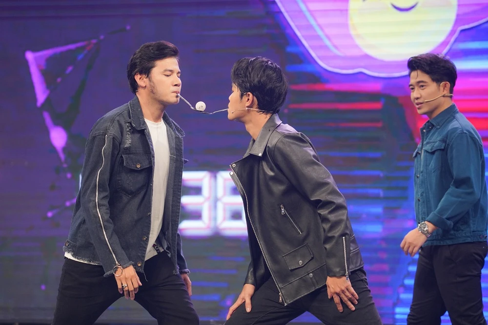 Quốc Bảo liên tục trêu: “Sao môi Anh Tài giật giật dữ vậy” khiến đội còn lại cười đắc ý.