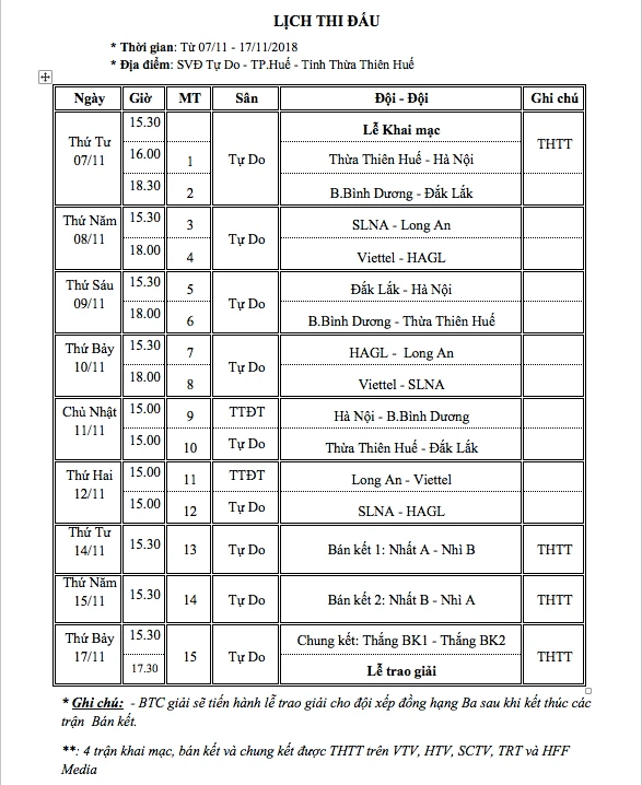 Lịch thi đấu chính thức giải U-21 quốc gia 2018.