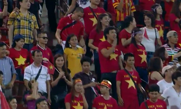 CĐV Việt Nam nhuộm đỏ 1 góc khán đài sân Rajamangala.