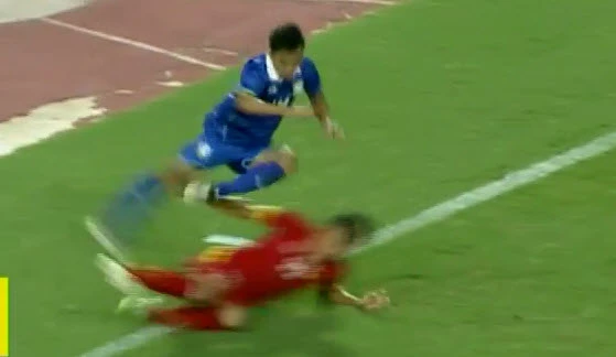 Phút 47, Thanh Hiền vào bóng rất quyết liệt với Chanathip, rất may là trước đó Chanathip đã để bóng đi hết đường biên ngang, nếu không Thanh Hiền đã có thể phải nhận thẻ.