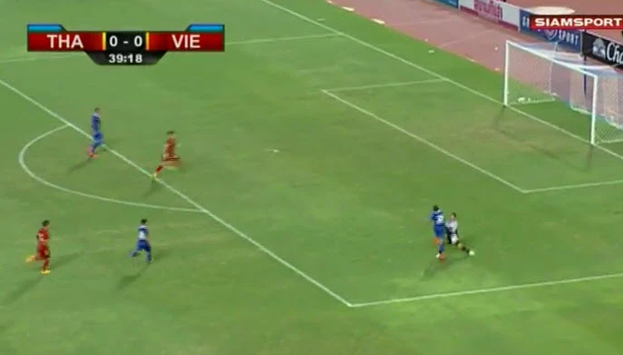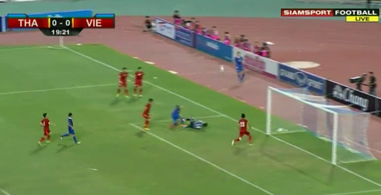 Phút 71, Thái Lan được hưởng quả đá phạt trực tiếp rất thuận lợi nhưng 2 tình huống sút bóng liên tiếp của cầu thủ Thái Lan đều bật vào hàng rào phòng ngự của Việt Nam bật ra.