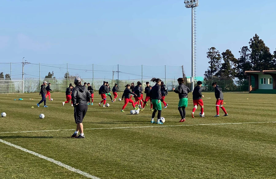 Tuyển nữ Việt Nam tích cực tập luyện chuẩn bị cho trận gặp Myanmar. ẢNH: VFF