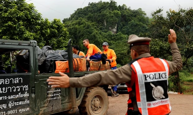 Nhân viên cứu hộ di chuyển đến hang Tham Luang. Ảnh: REUTERS